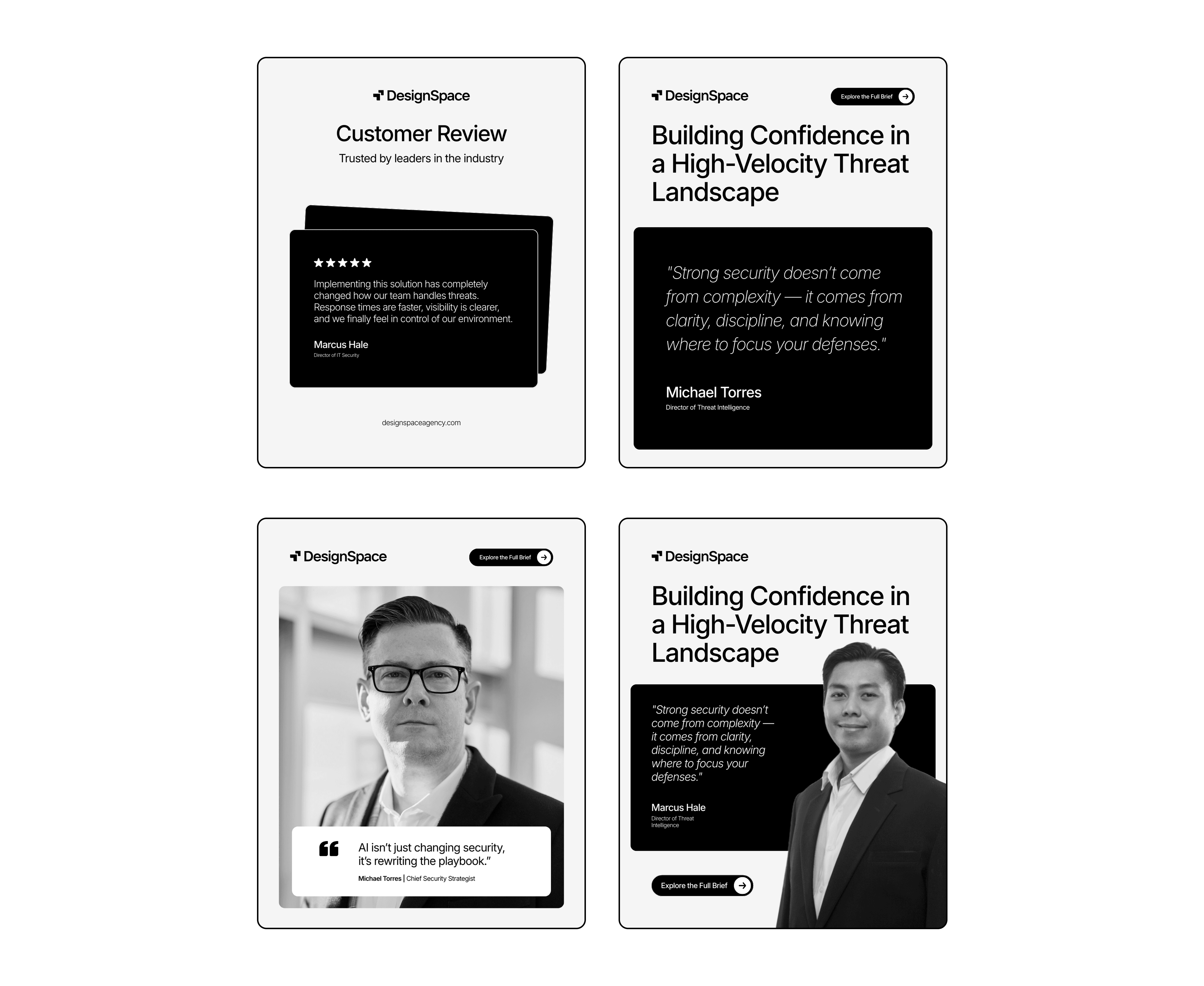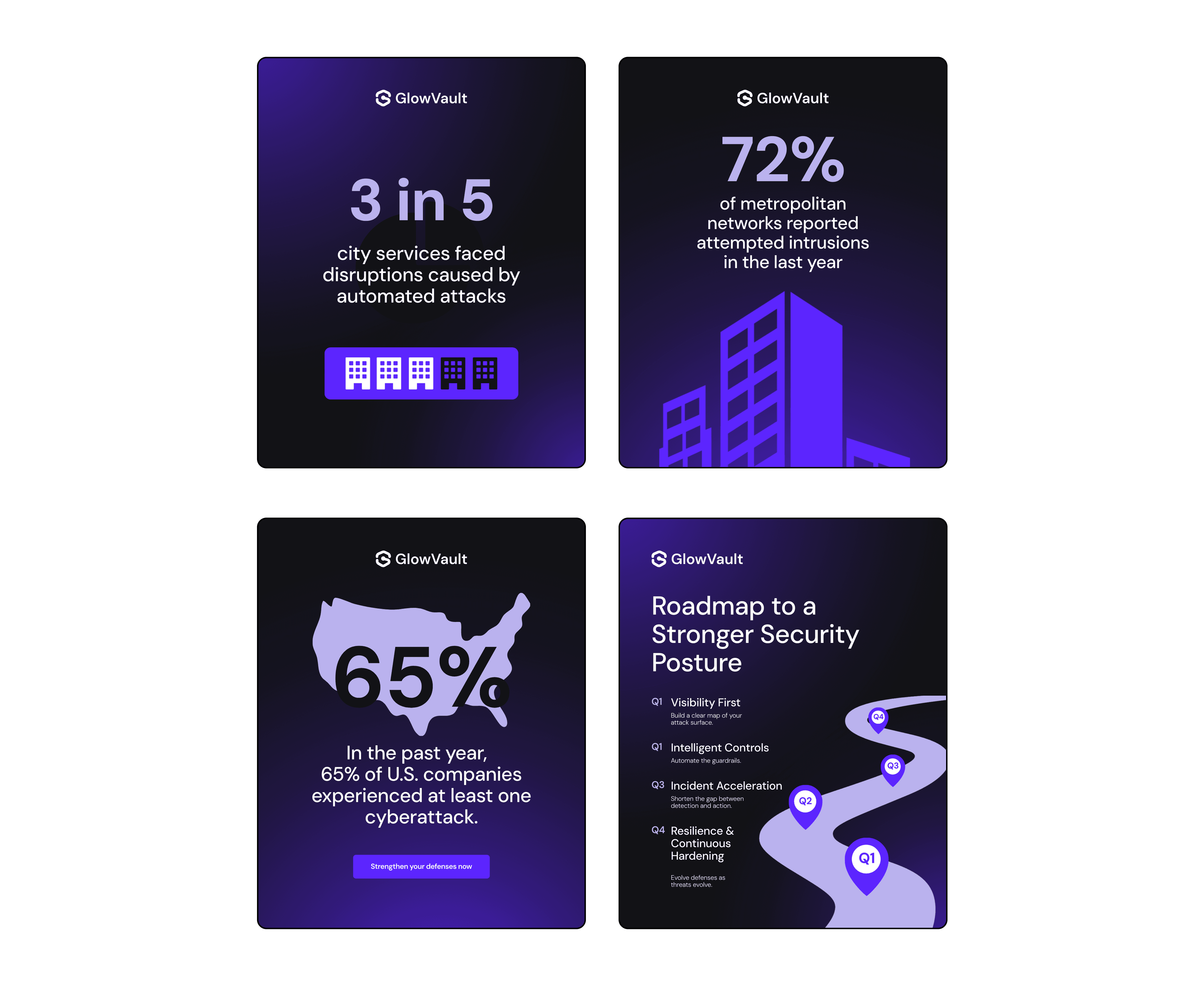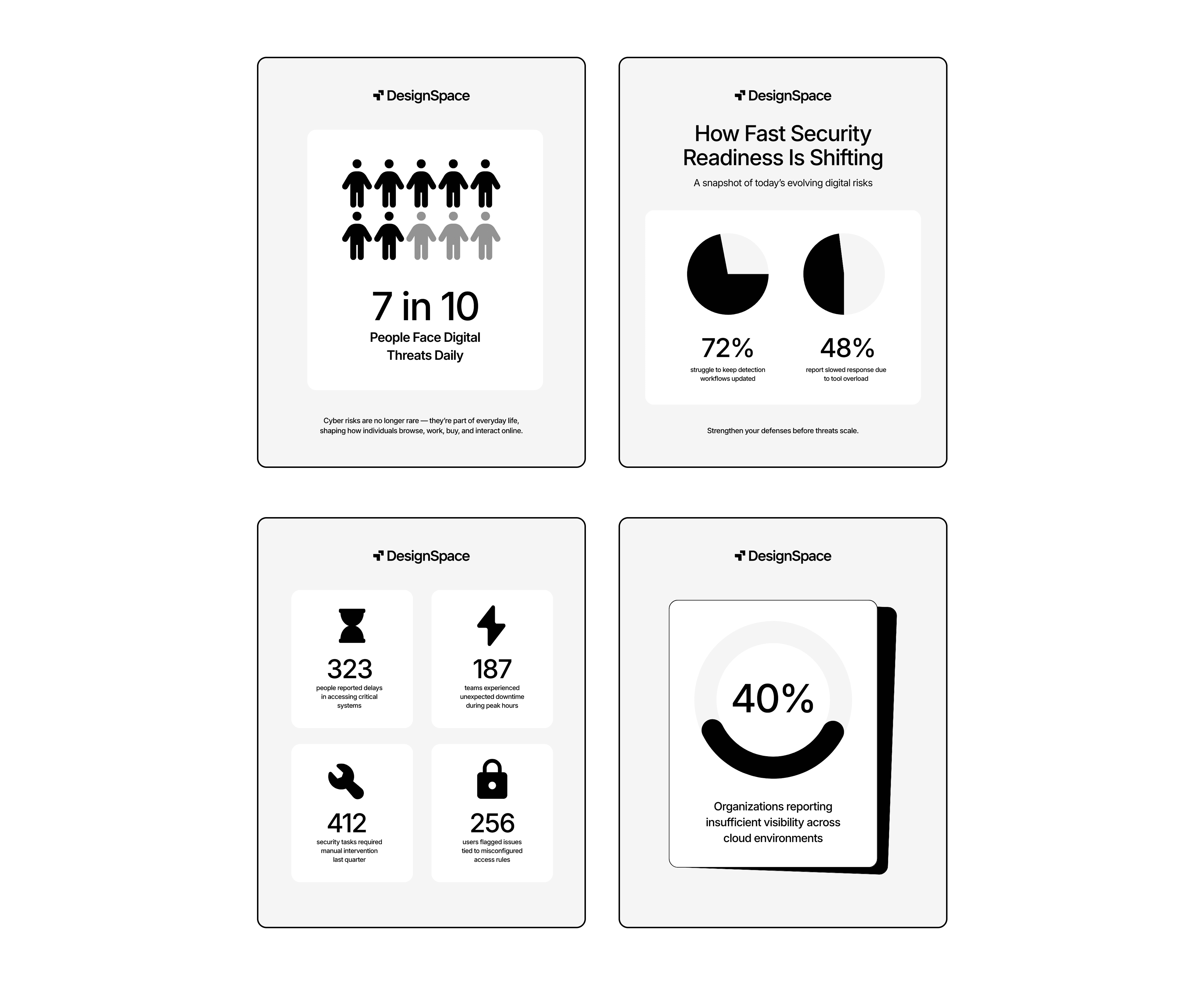 Everything cyber marketers need: social graphics, diagrams, reports, decks, one-pagers, campaign assets, and more — all crafted by cyber designers.