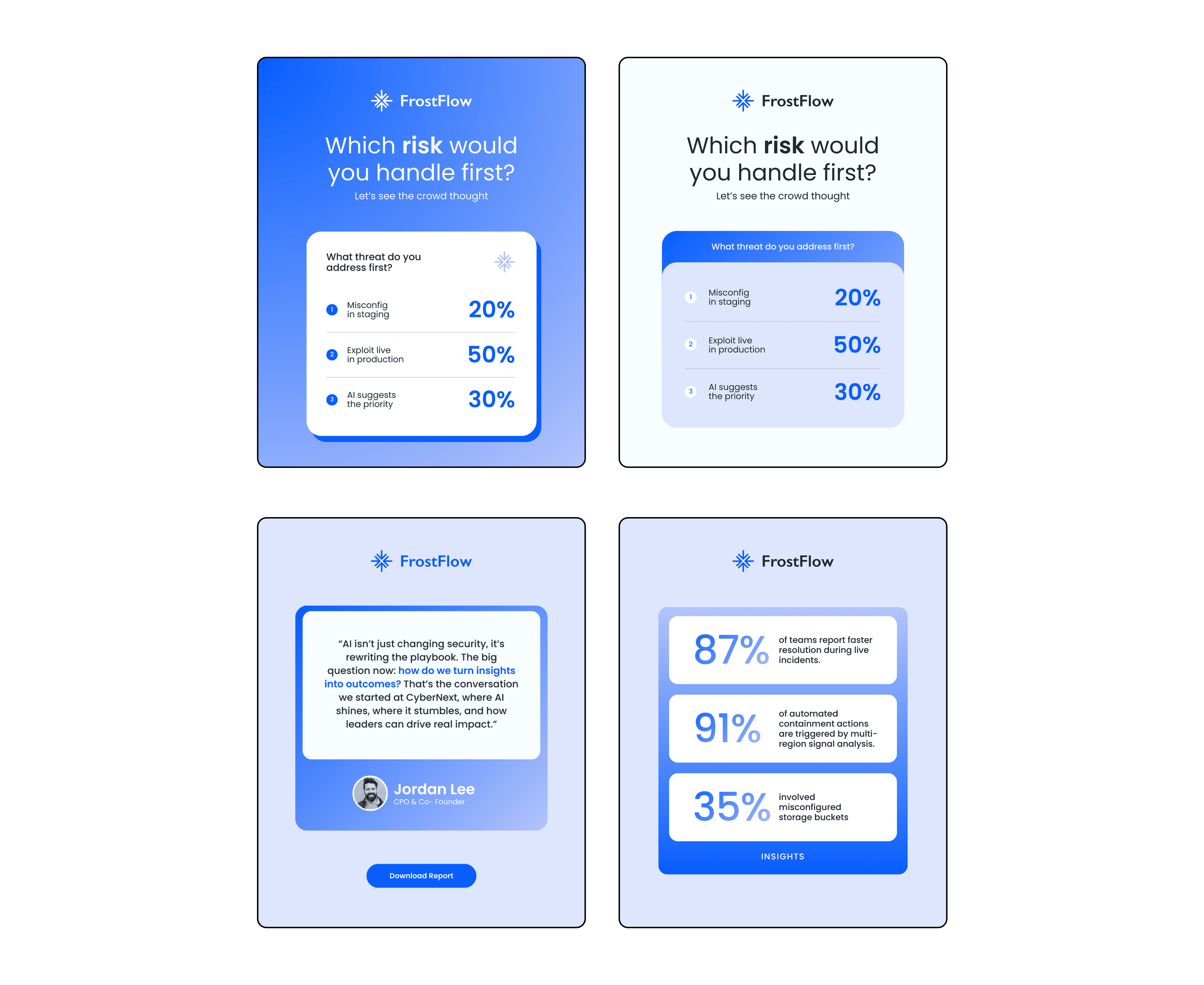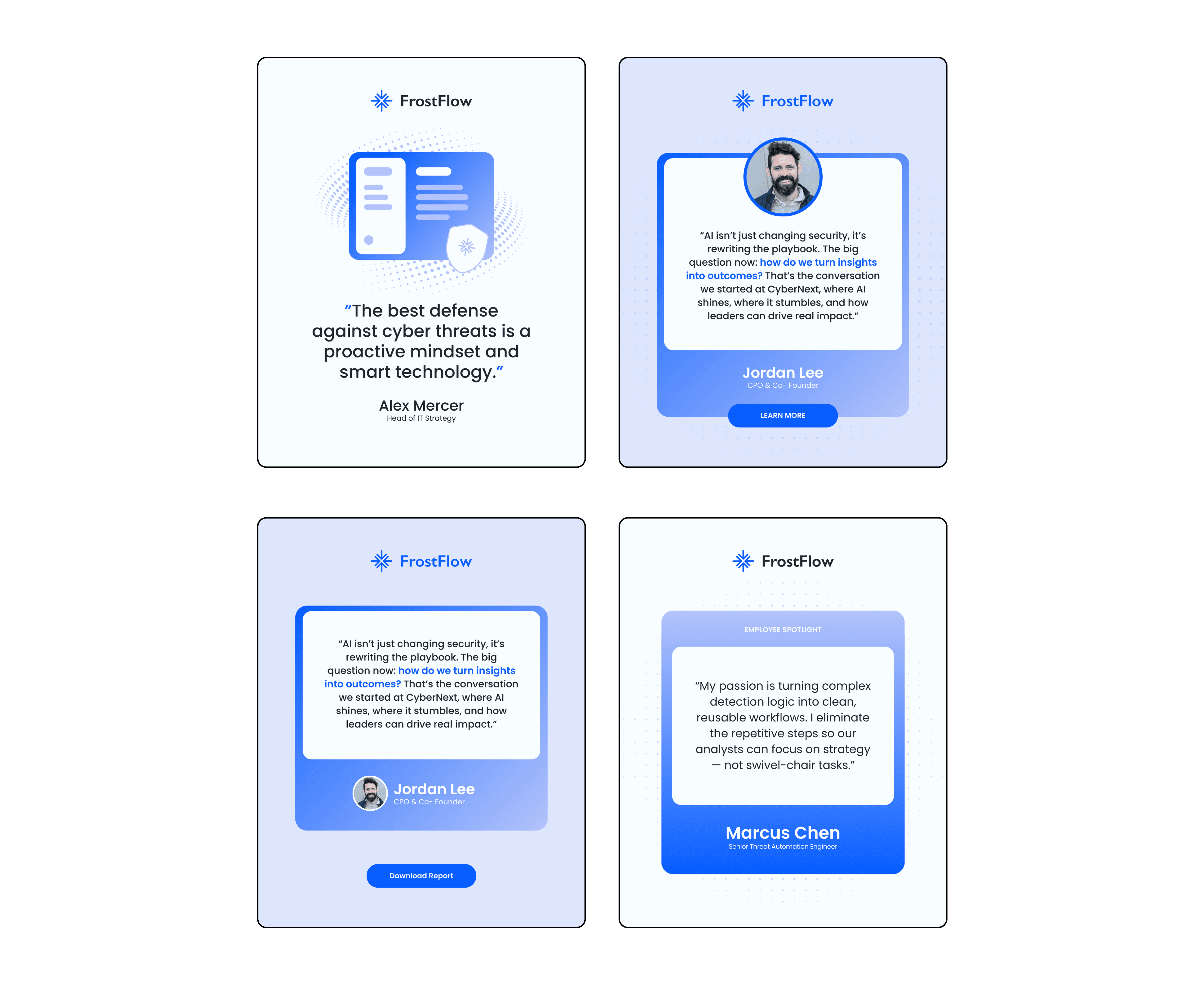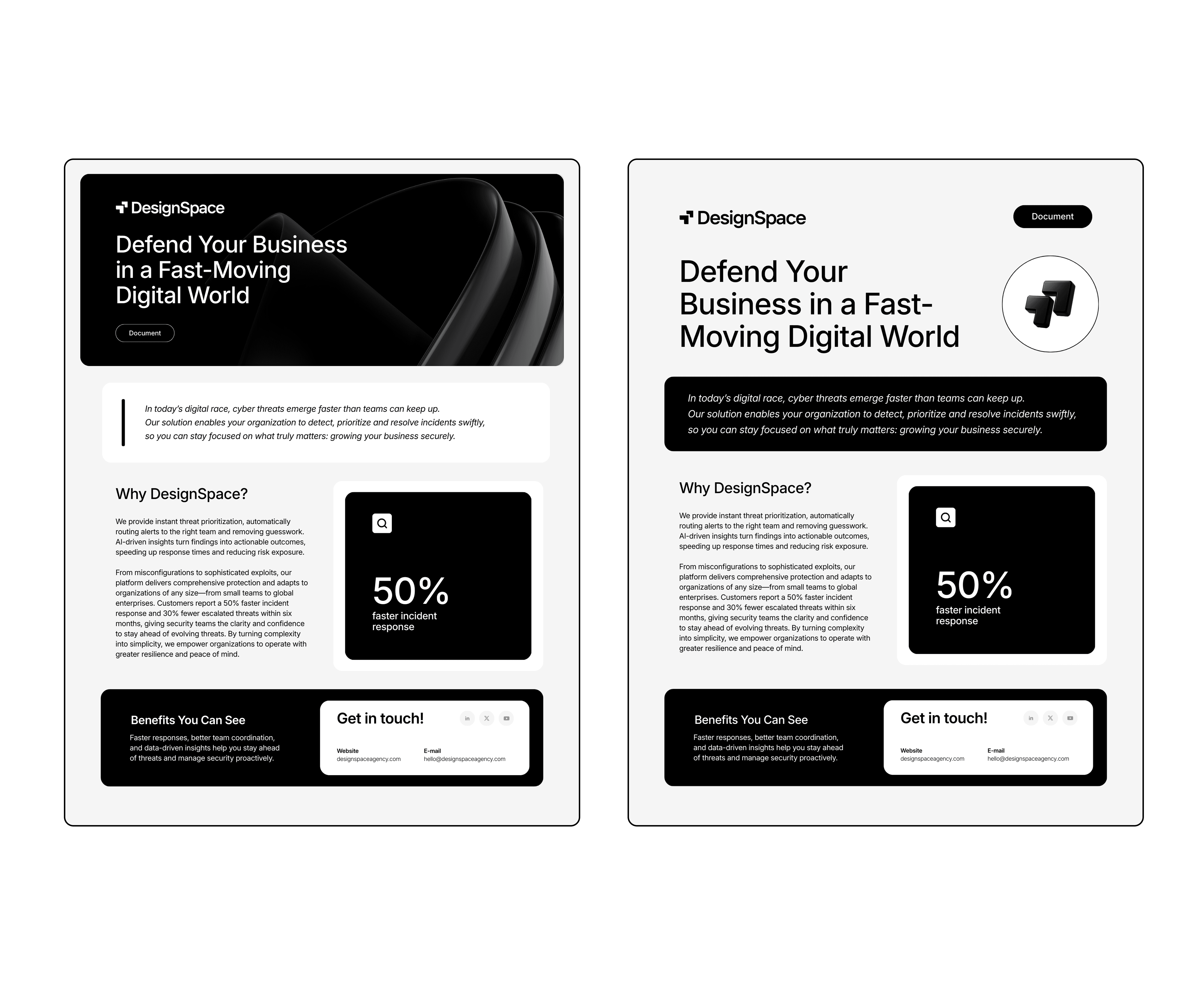 Everything cyber marketers need: social graphics, diagrams, reports, decks, one-pagers, campaign assets, and more — all crafted by cyber designers.