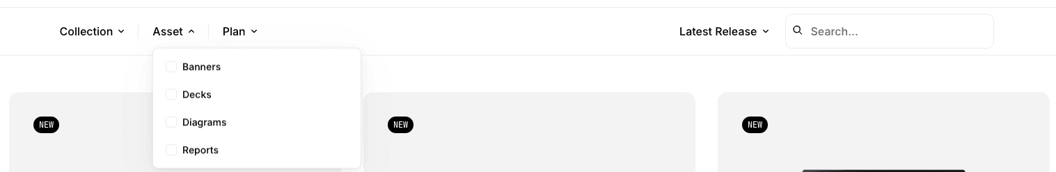 Start by browsing Collections first. It’s the easiest way to find a design style that fits your brand before diving into asset types.