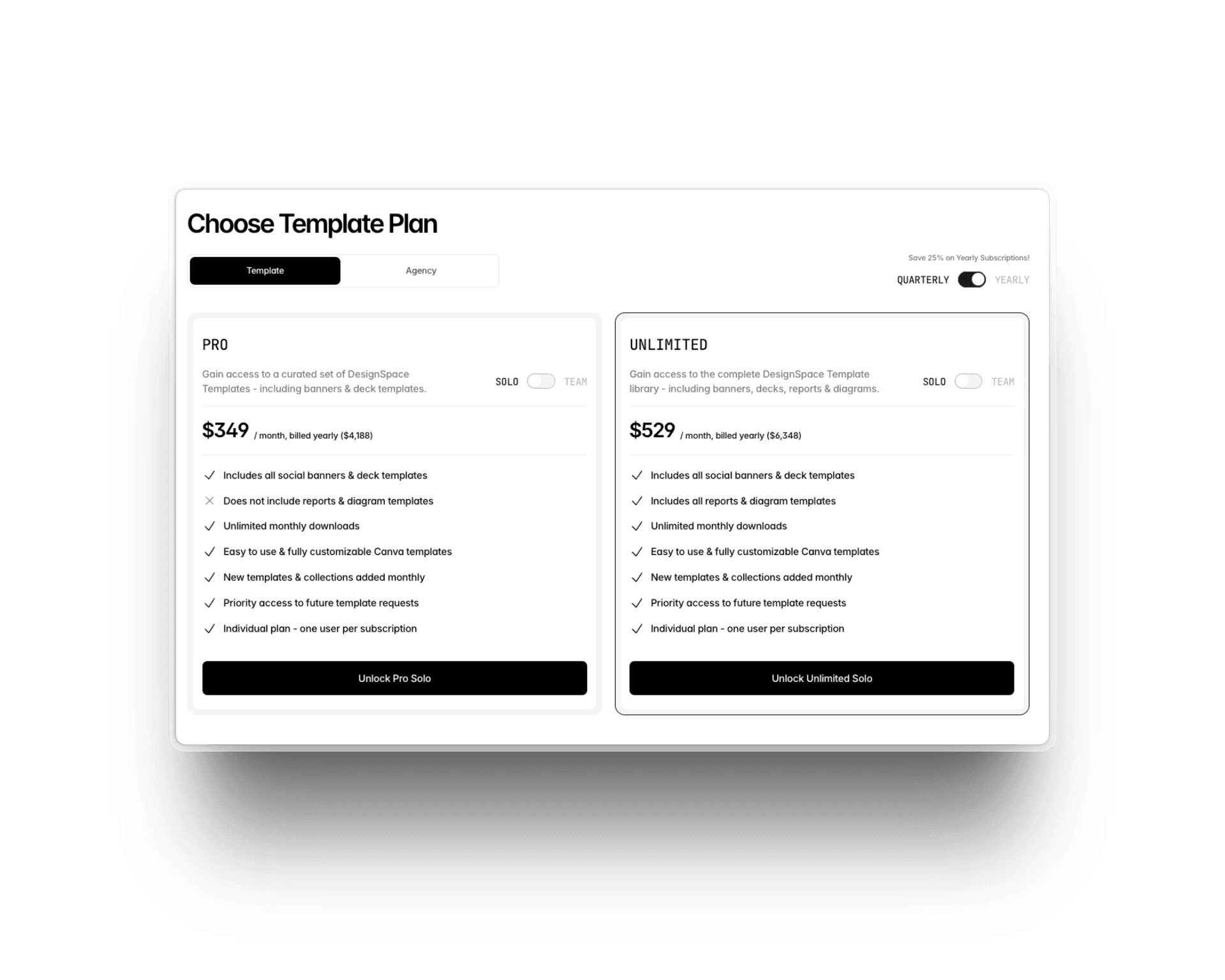 The complete DesignSpace experience — every asset type, across every collection. Full access to our entire library.